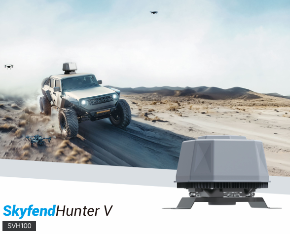 El sistema C-UAV Skyfend, montado en vehículo, consta del detector de radio Tracer V y el inhibidor Hunter V, formando una protección semiesférica sin puntos ciegos. El sistema es capaz de detectar y localizar drones cooperativos y a sus pilotos, además de proporcionar detección y alerta temprana para drones no cooperativos. Gracias a sus eficientes capacidades de detección y contramedidas, el sistema puede contrarrestar automáticamente las bandas de frecuencia objetivo basándose en la guía de detección, lo que garantiza una defensa eficaz contra drones.